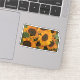 Map outline of the state of Kansas filled with a photo of blooming sunflowers for a memento of the Sunflower State.