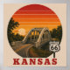 Showcasing the iconic Rainbow Bridge along historic Route 66, this vintage-style Kansas poster captures a glowing sunset over one of the Midwest’s most recognisable landmarks. Warm amber skies, subtle grain textures, and detailed foliage create a nostalgic, retro travel aesthetic full of depth and character. The curved road and classic concrete arch evoke timeless American road trip charm. Perfect for Route 66 enthusiasts, Kansas locals, and collectors of historic Americana art.