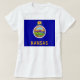The official flag of Kansas consists of a dark blue rectangle arranged horizontally with the state seal aligned in the centre. The state name "KANSAS" is printed below the seal. Above the seal is a sunflower sitting over a gold and light blue bar. The state seal tells the history of Kansas and pioneer life. The thirty-four stars clustered at the top of the seal signify that Kansas was the 34th state to be accepted into the Union of the United States.