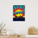 This electrifying pop art poster captures a moment straight out of a classic comic book—KAPOW! erupts across the sky in bold, explosive lettering as a towering city skyline quakes beneath the shockwaves. The piece is a vibrant homage to vintage superhero comics, bringing to life the drama, power, and action of a world where battles can shake buildings and every sound effect becomes part of the landscape. Whether you're a fan of retro comic art or modern graphic design, this poster adds a blast of energy to any room. With its dynamic composition, nostalgic flair, and larger-than-life attitude, it’s not just wall art—it’s a statement. Perfect for lovers of comics, pop culture, or anyone needing a visual “boom” in their space.