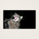 Grey tabby cat sings into a microphone amusing and comical karaoke photo business card