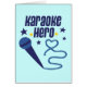 This karaoke music design is the perfect gift to buy for the karaoke lover in your life! This clever karaoke hero design features a microphone illustration with a cord that's twisted into the shape of a heart and is surrounded by blue and yellow stars!