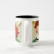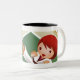 Karate boy holding wood with another breaking it Two-Tone coffee mug