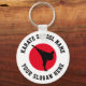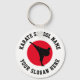 Karate dojo custom school name keychains. Personalise with name or slogan. Red hot rising sun with silhouette of fighter. Also great for other fight sports like ju jitsu, taekwondo, kung fu, judo, aikido, kickboxing, jiu jitsu, muay thai etc.