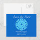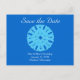 Stylish, serene save-the-date card for your winter wedding guests, featuring a child's silvery blue snowflake cutout. Just click "customise" and "change text" to replace our sample info with your own. Creators give half their proceeds to kids' charities.
