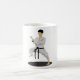 Strike an awesome karate pose just like this one. This person is in there karate outfit and they are in a karate pose. This karate person is wearing a black belt. This karate pose design looks great on this mug. Perfect for yourself or as a gift