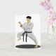 Strike an awesome karate pose just like this one. This person is in there karate outfit and they are in a karate pose. This karate person is wearing a black belt. This karate pose design looks great on these note cards