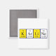 Karline spelled out as K Ar Li Ne (Potassium Argon Lithium Neon) on a magnet for the scientist in you.
