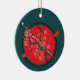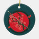Katana and red flowers on branch ceramic ornament