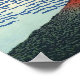 This Japanese colour print was created by artist Katsushika Hokusai in 1930. It's titled Mount Fuji in Clear Weather (aka Red Fuji). The artist used very strong colours, there's a strong contrast between the redness of Mt. Fuji and it's green foothills and the blue sky with its white clouds. The artist also signed the print in Kanji characters (Japanese writing).