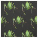 This fun animal fabric design features a lively katydid. Katydids are medium-sized to large insects. They are usually green, sometimes with brown markings, and are camouflaged to blend with the leaves they feed on. Their very long antennae distinguish them from grasshoppers. Seen up close, they seem to be aliens from outer space! Easily customise the black background to any colour that will suit your special project.