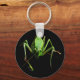 This keychain features a lively green katydid. Katydids are medium-sized to large insects. They are usually green, sometimes with brown markings, and are camouflaged to blend with the leaves they feed on. Their very long antennae distinguish them from grasshoppers. Seen up close, they seem to be aliens from outer space!