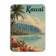 This serene vintage poster captures the natural beauty of Kauai, the “Garden Isle” of Hawaii. Towering emerald cliffs, lush tropical forests, and gentle ocean waves create a timeless island scene, enhanced by warm, faded tones and retro textures. Whether it's the Na Pali Coast or hidden beaches, this artwork evokes the spirit of mid-century travel to paradise — perfect for lovers of vintage tropical posters and Hawaiian escape vibes.