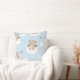 A dreamy seamless pattern throw pillow featuring adorable angel cats holding hearts as they sit on fluffy clouds against a soft sky-blue background. Accented with stars, moons, and planets, this celestial kawaii design brings a sweet and comforting vibe. Ideal for cat lovers.