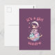 This postcard is designed for those who are expecting a girl. This design is a great gift or news flasher for baby gender reveal parties. The design consists of a kawaii style cute illustration of an astronaut girl sitting on a small planet accompanied by the text "it's a girl".
