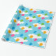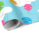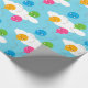 Colourful pattern of happy balloons floating in a cloudy blue sky.