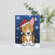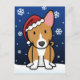 Send Basenji Christmas Postcards to all your animal-loving friends this year! A cute kawaii Basenji cartoon sits upon freshly fallen snow wearing a Santa cap, while snowflakes drift gently down all around him.