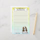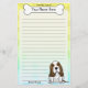 Fun Kawaii Basset Hound stationery with a cartoon dog breed in the lower right corner. The top portion can be instantly personalised with your name inside the big doggie bone. Border and paper background are a yellow to blue fade.