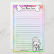 Fun Kawaii Bedlington Terrier stationery with a cartoon dog breed in the lower right corner. The top portion can be instantly personalised with your name inside the big doggie bone. Border and paper background are a pretty pastel rainbow.