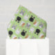 A repeat pattern of 4 different breeds of cute bunny rabbits on a green background for Spring and Easter.