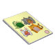 This cute and colourful notebook with pastel yellow background has four little kawaii cartoon animals (dinosaur, squirrel, bunny and tiger) on it. These cute buddies are hand drawn with markers and coloured pencils.