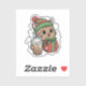 Cute kawaii Christmas cat sticker featuring a festive kitty holding coffee and a gift. Perfect for laptops, water bottles, journals, and holiday gifts for cat lovers.