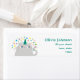 Cute, kawaii cat unicorn return address label with colourful stars.