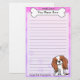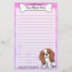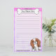 Colourful Kawaii Cavalier King Charles Spaniel stationery with a cartoon dog breed in the lower right corner. The top portion can be instantly personalised with your name inside the big doggie bone. Border and paper background are a pretty pink to purple fade. This is the Blenheim coat colour.