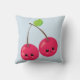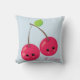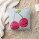Decorative pillows for your home, this throw pillow features a cute pair of red cherries on a light blue background (front and back). The front has a place to insert your name in a lovely cursive red font. Personalise your pillow today!