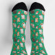 Step into the holiday spirit with these incredibly cute Kawaii Christmas Cats Socks! Featuring an all-over pattern of adorable wide-eyed kittens wearing Santa hats, wrapped in bows, and surrounded by festive decorations like Christmas trees, gingerbread men, candy canes, and stockings. The vibrant, playful pattern is set against a crisp white background.