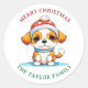 Kawaii Christmas Puppy Dog Family Name Classic Round Sticker