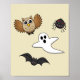 A set of kawaii creepy night creatures: owl, ghost, spider and bat. Decorate your notebook and journal with pretty cute goth stickers. A gift idea for halloween lovers, spooky lovers, and kawaii lovers.