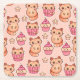 Kawaii Cute Cats and Cupcakes Pink Pattern Square Paper Coaster