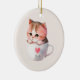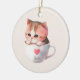 Kawaii Cute Striped Pink Chibi Cat Ceramic Ornament