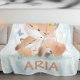Kawaii Fox with Flowers with Custom Name Fleece Blanket