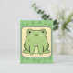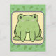 Green kawaii frog inside a yellow square in a green background with a pattern of leaves..