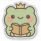 Adorable frog reading quietly, ideal for bookworms and students who love cute art.
