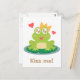 Kawaii cartoon of a frog with sparkling eyes and a crown on its head. The frog prince is sitting on a lily pad in the pond. 2 hearts around its head adding to the romantic vibe of the design. Current words read "Kiss me!" This adorable, attractive and colourful design is ideal for anyone who is in love. Designed by Rusty Doodle.