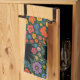 Kawaii Garden Art | Cute Black Cat Floral Pattern Tea Towel