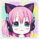 Cute Kawaii girl with headphones and cat ears pink and blue pop art background stickers.