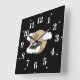 Kawaii Happy Bat Flying on Full Moon Square Wall Clock