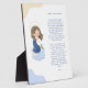 Beautiful plaque featuring kawaii art of the Virgin Mary in the Immaculate Conception, standing on a cloud with the moon at her feet. Includes editable prayer text below. A sweet devotional card blending faith and cuteness, perfect for Catholic gifts and keepsakes.