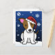 Send Jack Russell Terrier Christmas Postcards to all your animal-loving friends this year! A cute kawaii jack cartoon sits upon freshly fallen snow wearing a Santa cap, while snowflakes drift gently down all around him.