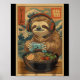 Kawaii Japanese Ramen Sloth Retro Gaming Shirts Fo Poster