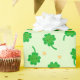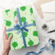 Repeat pattern of lucky four leaf clover and yellow hearts on a pale green background. Great for St Patrick's Day.