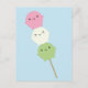 A stick of 3 colour Japanese mochi dango with kawaii faces.
