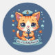 Kawaii Nautical Cat Sailing Anchor Pun Classic Round Sticker