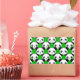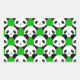 A cute panda bear, kawaii cartoon style pattern. Original design in black and white with green background.