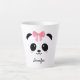 Cute panda personalised latte mug. Pretty chubby kawaii panda face with pink cheeks and pink ribbon. Easily add your name to personalise the mug. Lovely gift for a girl, a daughter, girlfriend on a birthday or other special occasion.