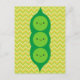 Three happy peas in a pod with a colourful zig zag polka dot background.